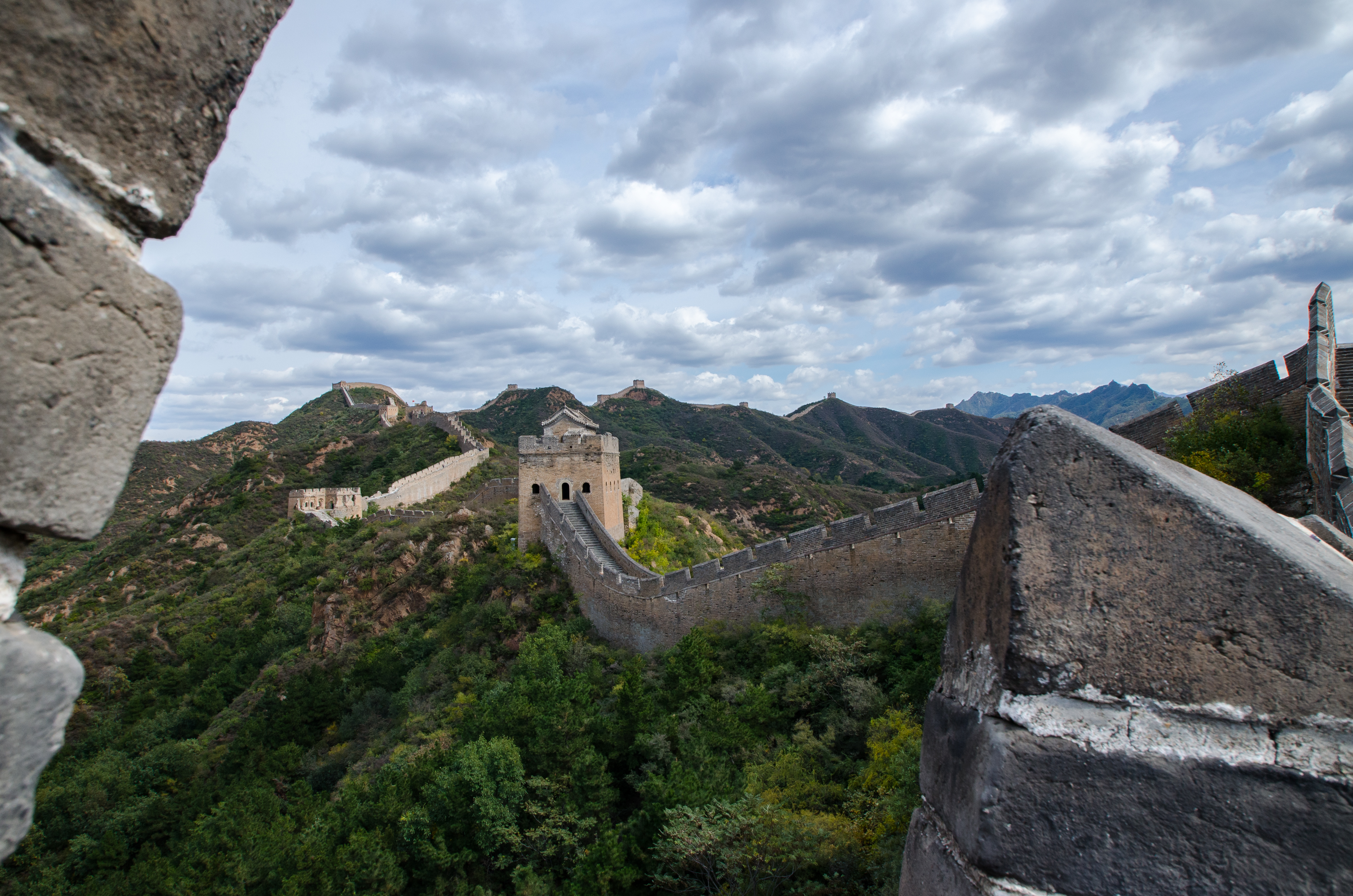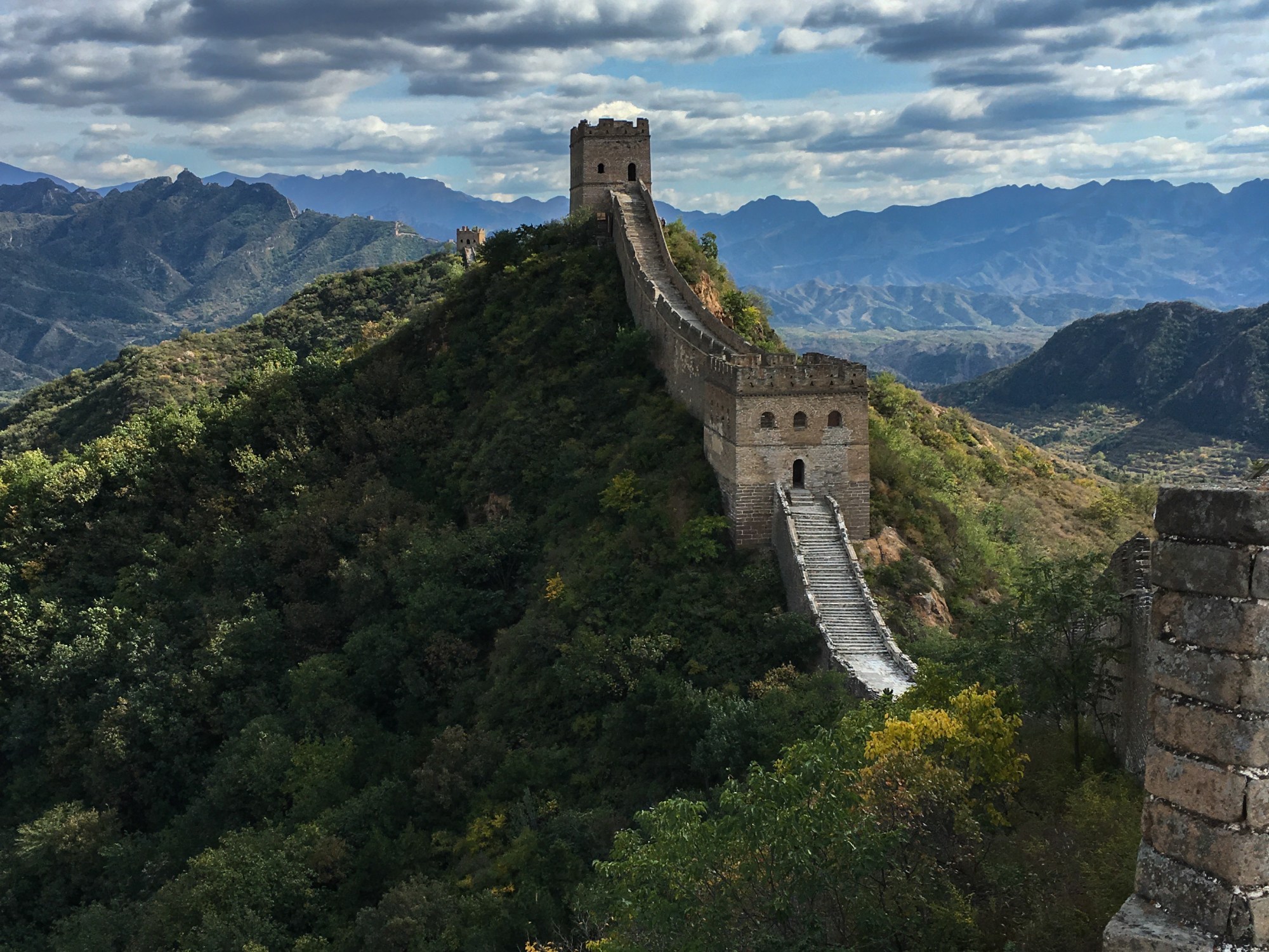 In de vroege ochtend stapten we samen met 20 andere westerlingen in een bus naar de Chinese muur tussen Jin Shan Ling en Si Ma Tai. Een 3 uur durende rit door uitgestrekt stedelijk gebied voerde ons richting dit prachtige gedeelde van de muur. De reisleidster was “one of a kind Emily” die bedoeld en onbedoeld erg grappig was. Op de eerste traptreden van de muur raakten we al snel aan de praat met een Britse tweeling (Jon and Jo) en twee zusjes uit Jersey. Na 5 torens nog tussen de Chinese toeristen gelopen te hebben waren daarna de overige 17 torens en muur voor ons alleen om te beklimmen en te bedwingen. Soms met handen en voeten om de steile, ongelijke en afgebrokkelde treden op te klauteren. In een glooiend berglandschap gelegen wereldwonder. Zo ver als het oog rijkt een lijn die over de bergkammen meedeint. Je kan je voorstellen dat zelfs Dzjengis Khan onder de indruk moet zijn geweest. Eeuwenoud en eeuwig indrukwekkend.