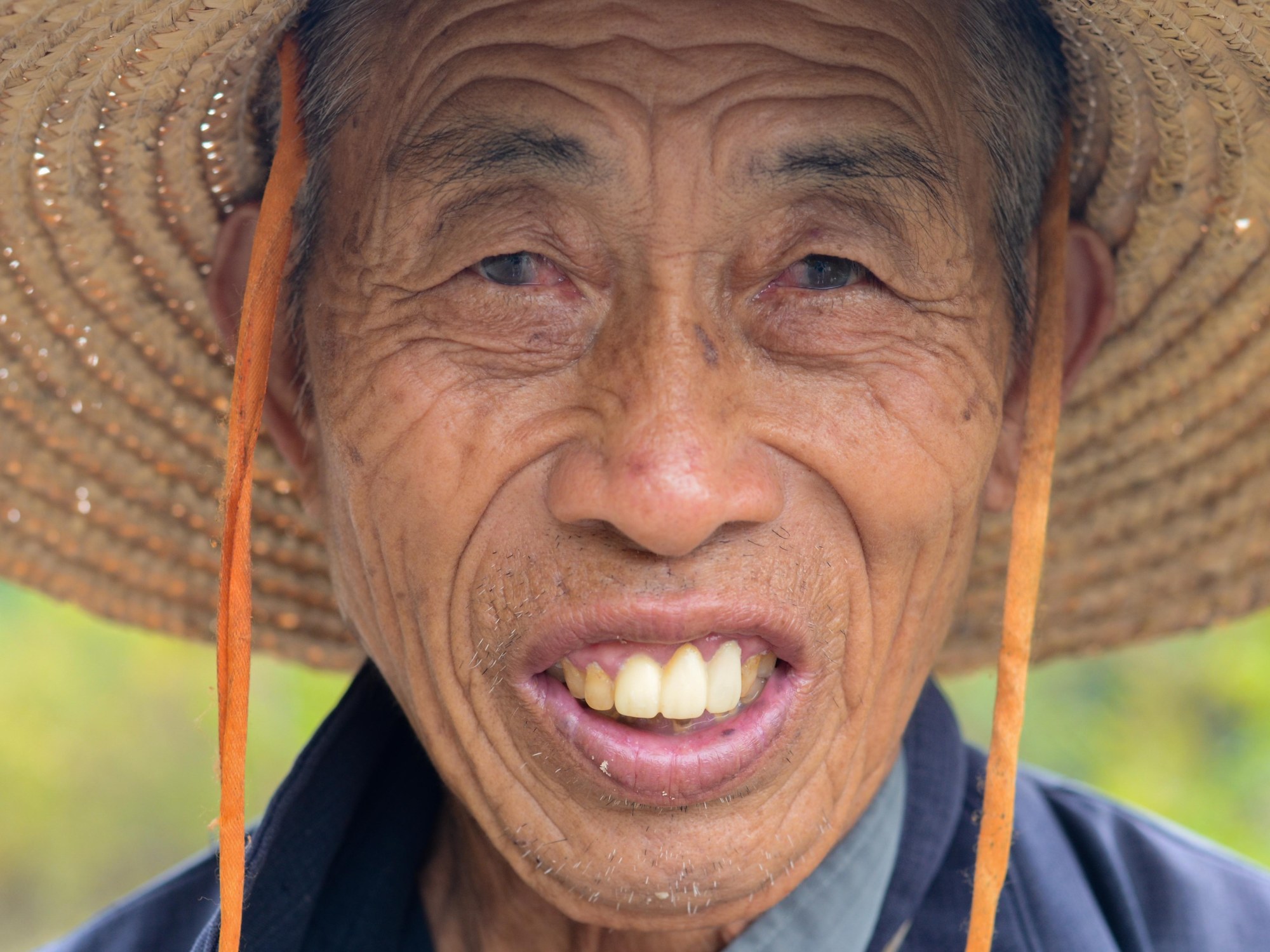 De afgelopen dagen fietsten we langs prachtige bruggen, rijstvelden, wateren, Karst bergen en oude wijkjes. De ongerepte rust die hier heerst is om van te genieten en meer dan eens waan je jezelf in het China van 100 jaar geleden. Tijdens een stop om foto’s te maken bij een van de meertjes slenterde een oude man in traditionele klederdracht voorbij met twee jonge kalveren. Hij groette ons hartelijk. Zijn gezicht was getekend door hard werken en de Chinese zon. Hij gaf ons een aantal mandarijnen die in grote getale langs de weg aan kleine bomen groeien. Geen mandarijnen zoals wij ze kennen, maar zo groot/klein als een grote bonk (=knikker voor de onwetenden).