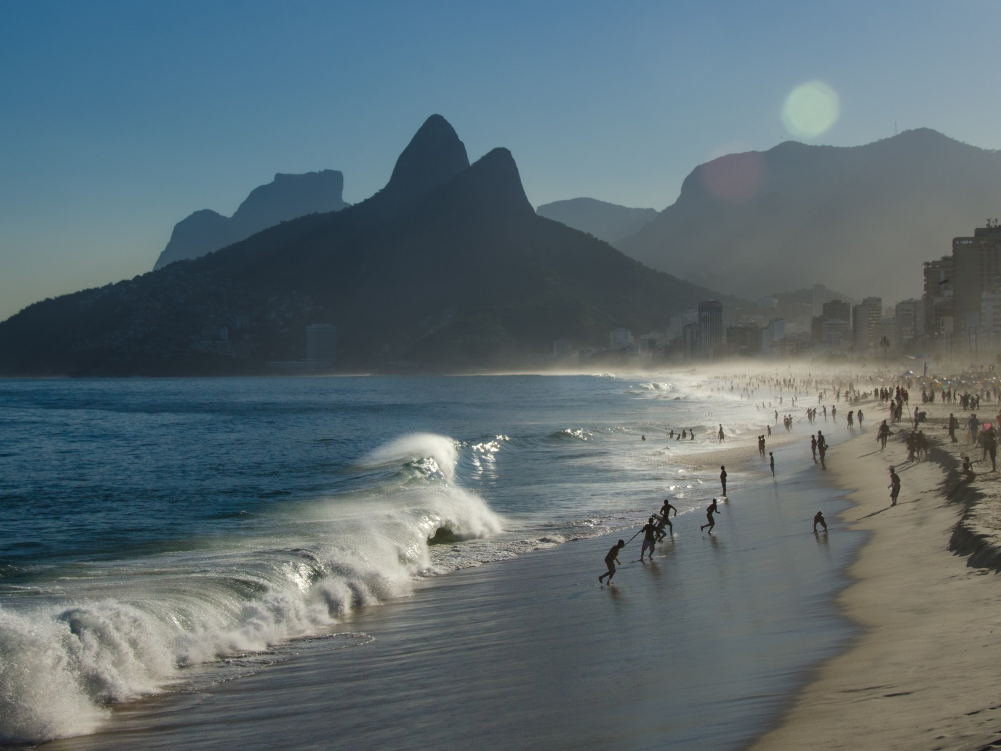 Het beeld van het lage licht over Ipanema met de krachtige golven die op het strand breken. De vele mooie mensen die kijken en bekeken worden. Mannen die een balletje magisch hooghouden of elkaar ‘inslaan’ met beachvolleybal. Dit alles tegen de achtergrond van de iconische, prachtige conische bergen zoals Pão de Açúcar en Corcovado. Om uiteindelijk met een koud biertje vanaf de rotsen van Pedra do Arpoador met tientallen andere leeftijdsgenoten de zon te zien zakken over Ipanema.